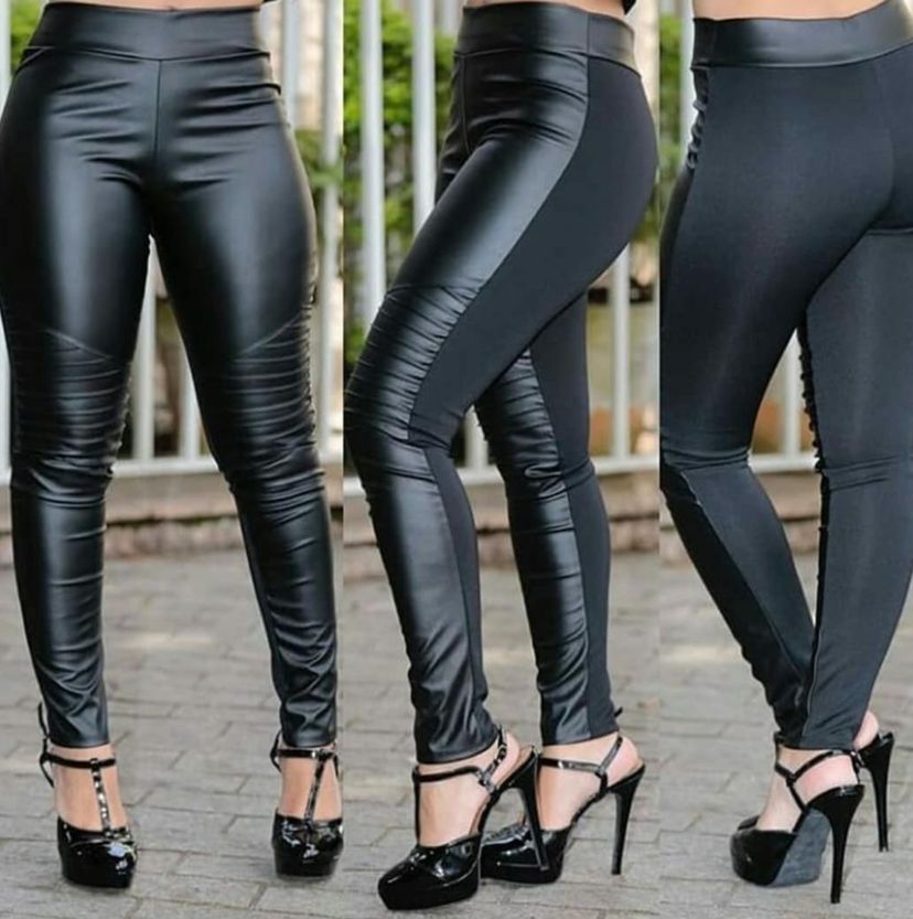 Cal a Feminina Em Napa Preta Couro Sint tico Legging