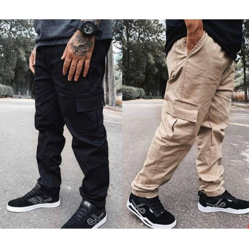 Cal a Cargo Preto Unissex Skatista Estilo Streetwear Cal a Sarja Cal a Larga Casual Jogger
