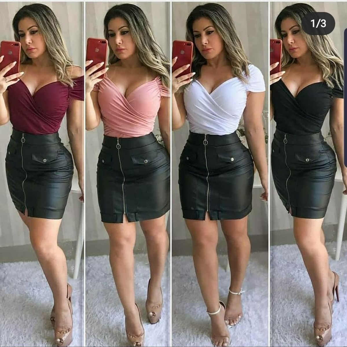 Conjunto Body C Bojo Saia Couro Fake Look Pronto Primavera ver o Fica Linda Saia Feminina Reborn Rb Nunca Usado 44647421 enjoei