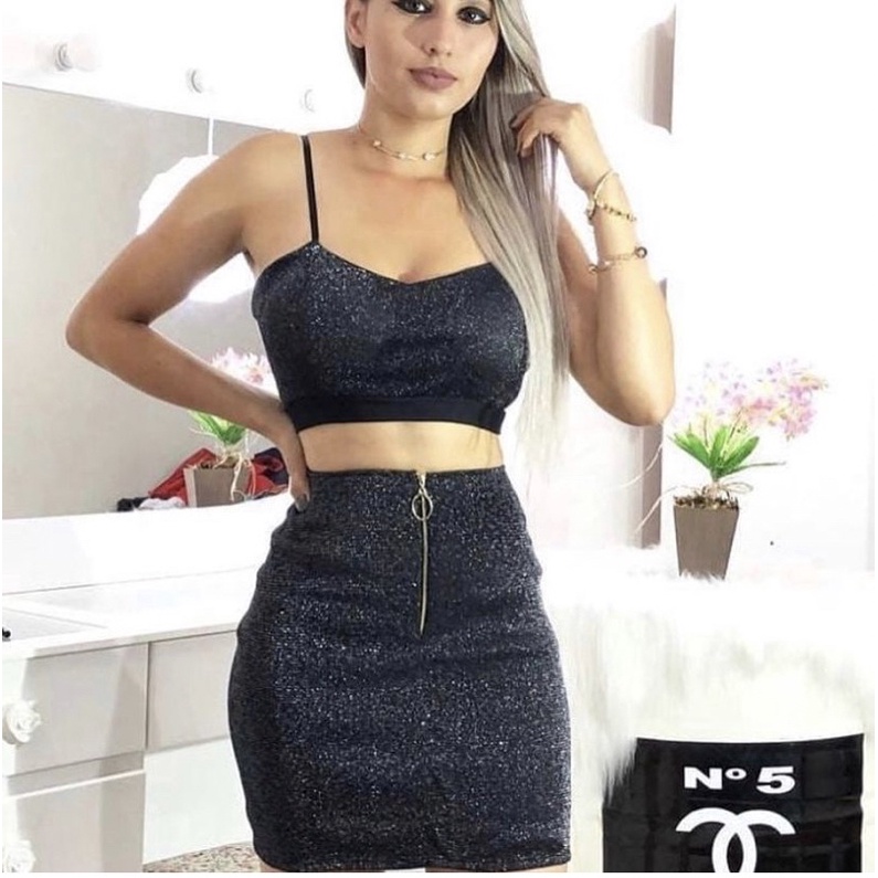 Saia com brilho saia festa saia com glitter saia curta saia justa