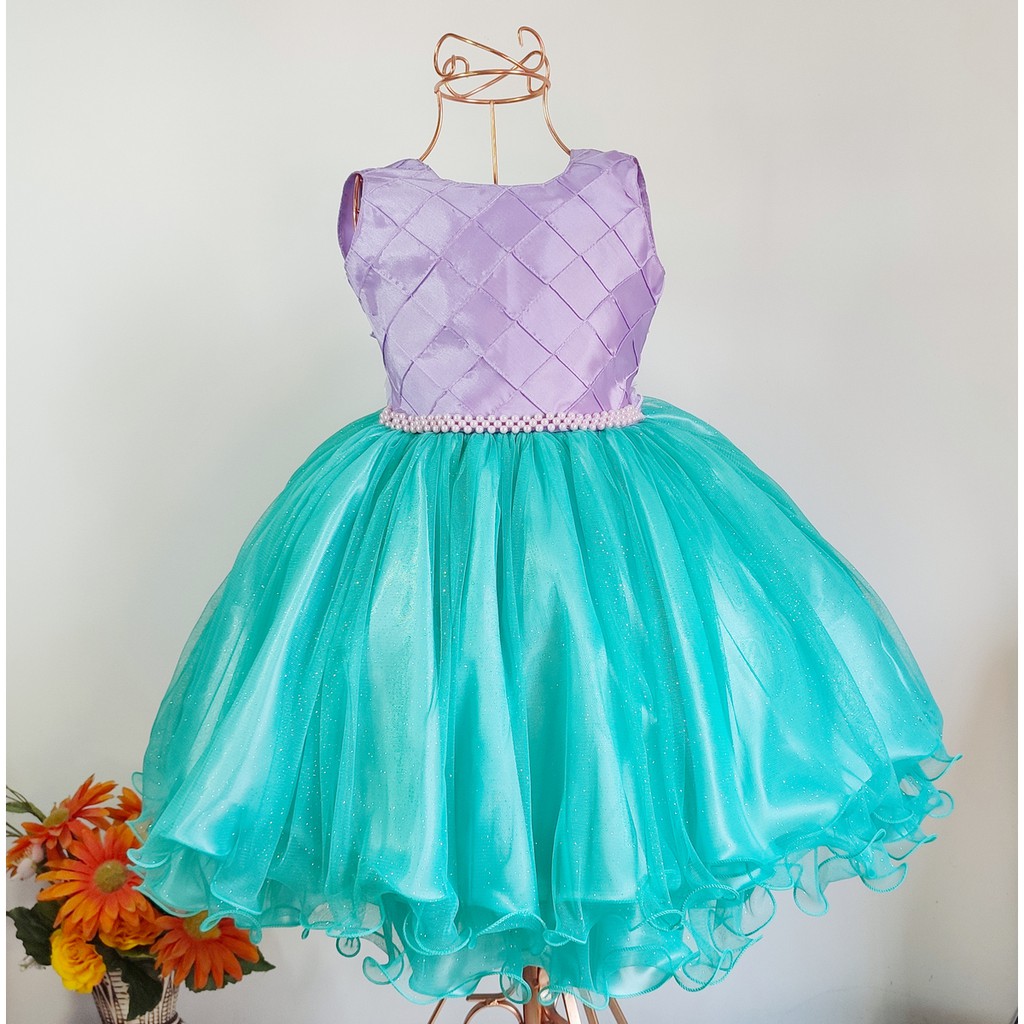 Vestido De Festa Infantil Ariel Pequena Sereia Lilas Luxo 1 Ao 14 Anos