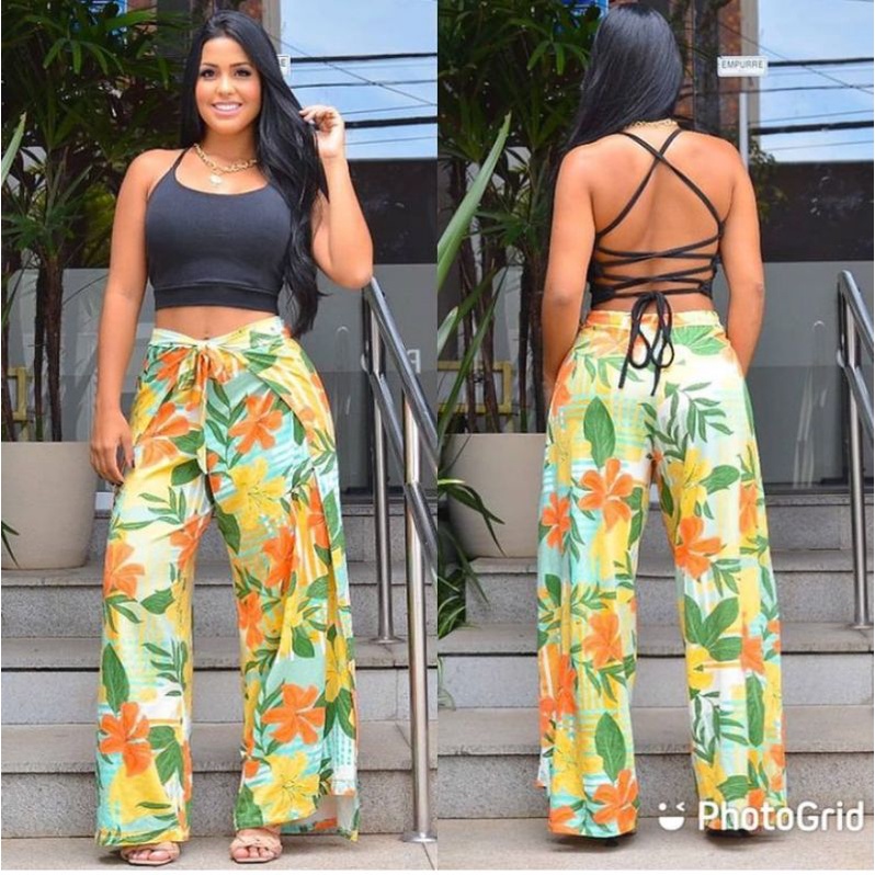 Cal a De Crepe La o Amarrar Pantalona Envelope Brinde152