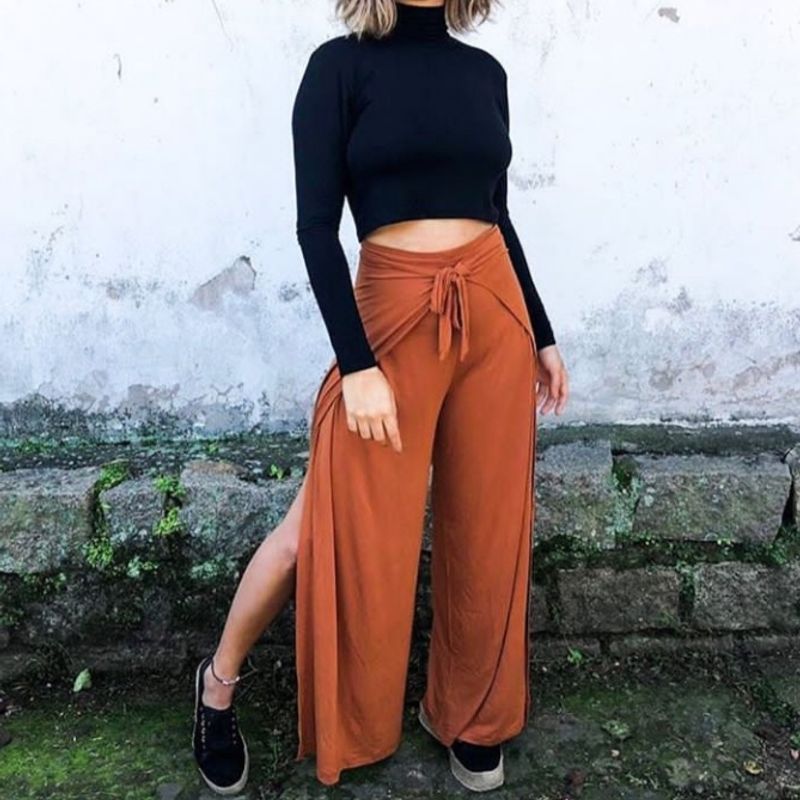 Cal a Pantalona Envelope Feminina De Amarrar Com fendas na Lateral