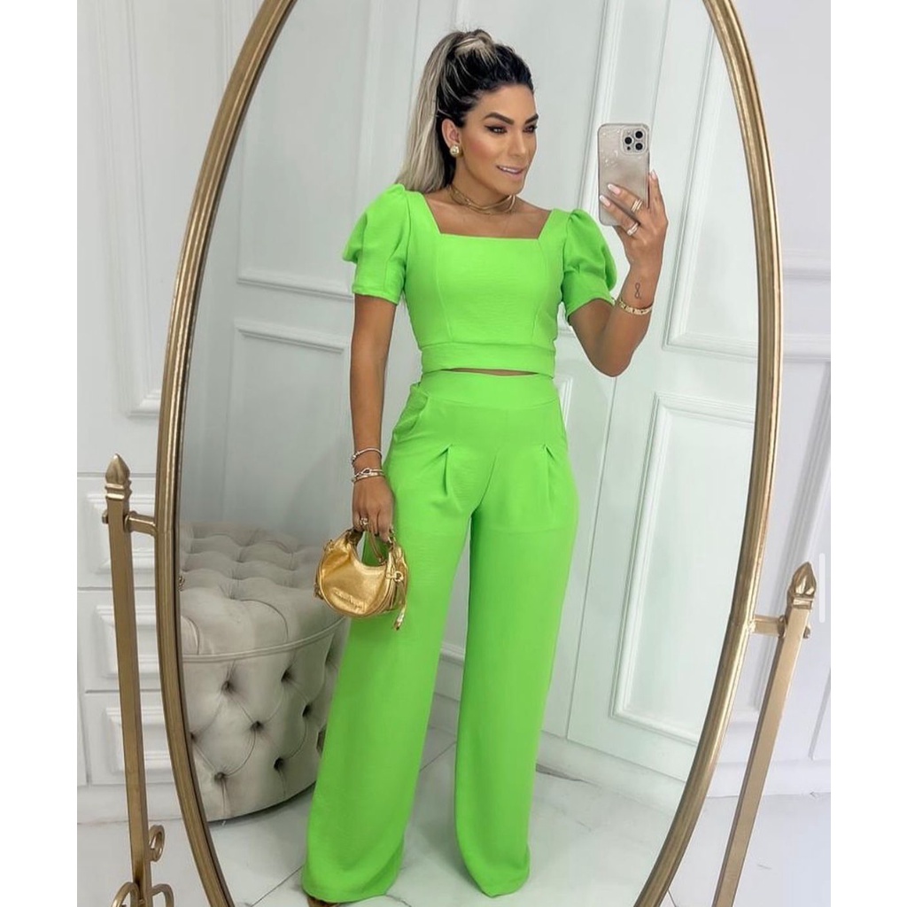 Conjunto Feminino Cropped Cal a Pantalona Verde Lima Compre