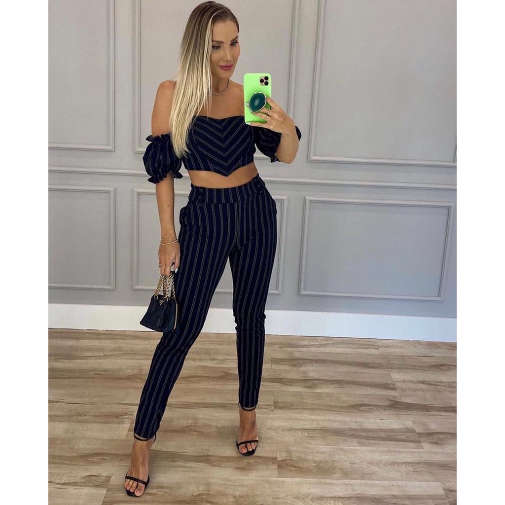 Conjunto Feminino De Blusa Cropped Bojo e Cal a Skinny Colada