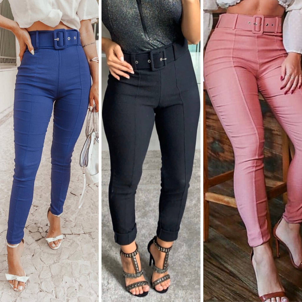 Cal a Feminina Social Slim De Bengaline Com Cinto Shopee Brasil