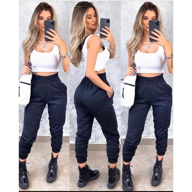 Cal a de Moletom Feminina Cintura Alta Moletom Grosso Shopee Brasil