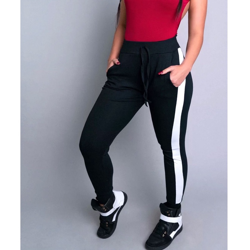 Calça de moletom feminina clearance com listra do lado, Calca bravaa moletom feminina jogger listra lateral inverno 311 clearance