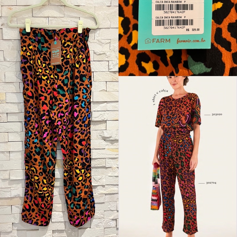 Calca clearance onca farm, Cal a Farm Cropped On a Flor Cintura Alta Feminina Estampado clearance