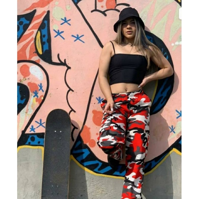 Calça camuflada vermelha clearance feminina