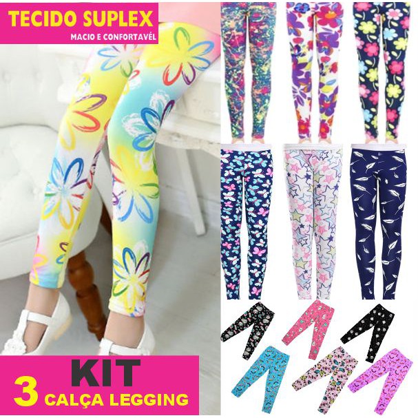 Calca legging infantil cotton atacado crian a juvenil kit com 2
