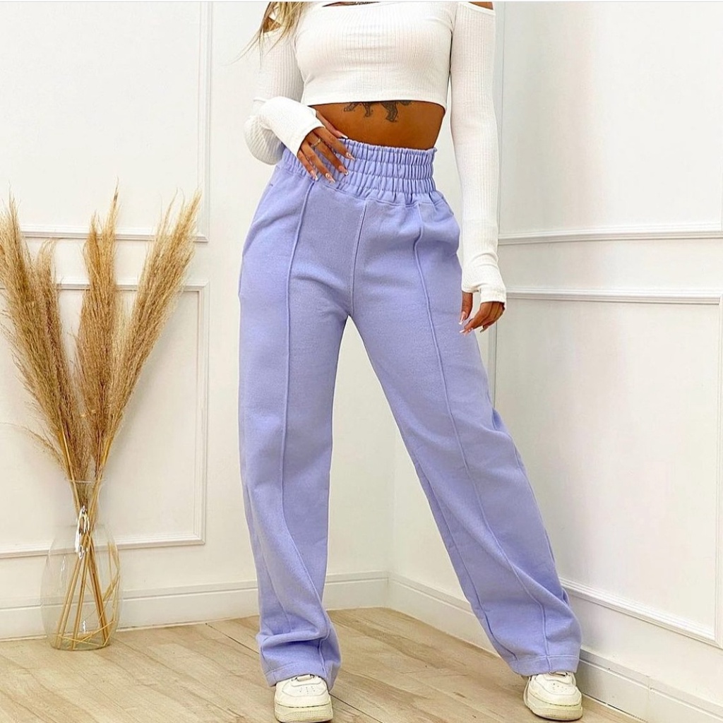 Cal a Moletom Feminina Wide Leg com Vinco Flanelada Boca Larga de Sino