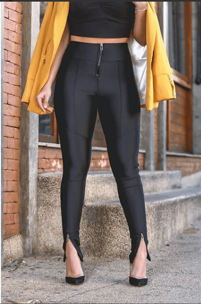 Cal a Feminina Tecido Prada Original Ziper Cintura Barra