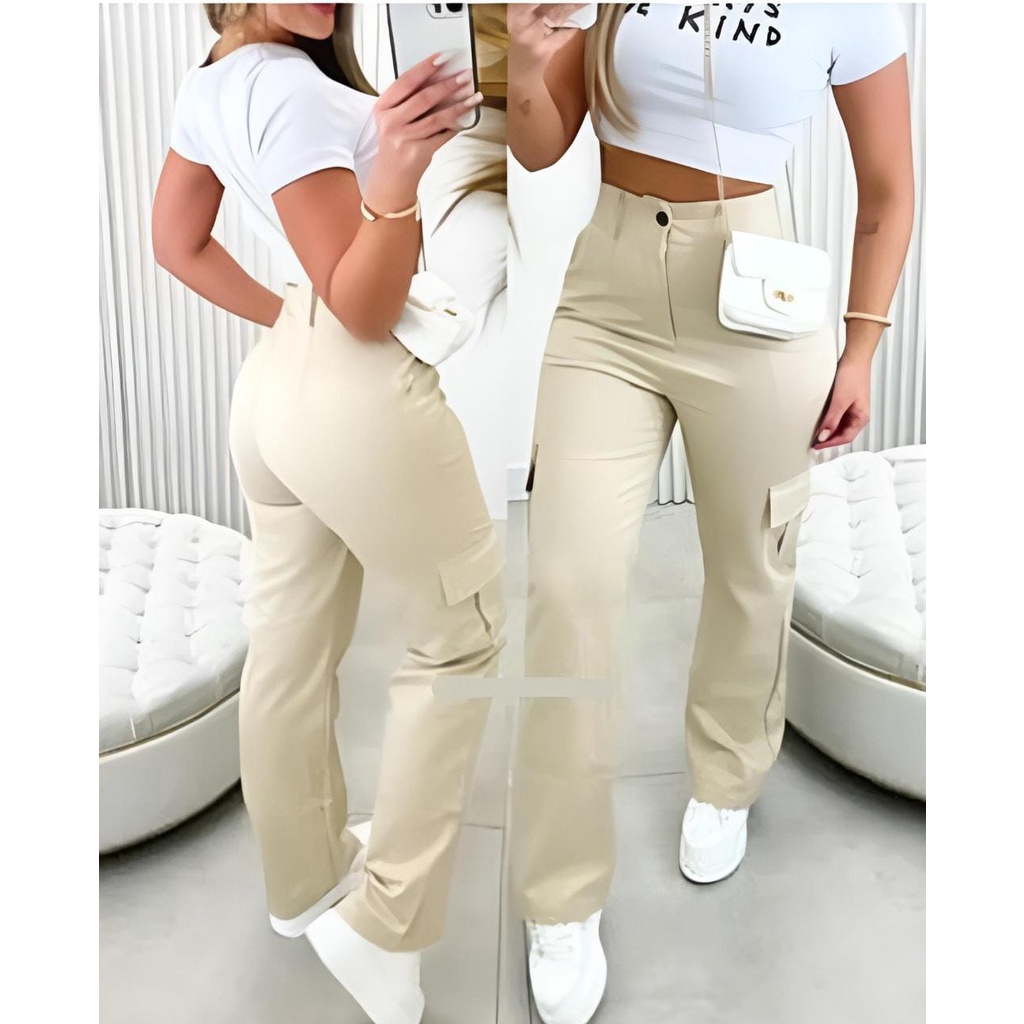 Cal a Feminina Cargo Cal a Wide Leg Cintura Alta Bolso Lateral