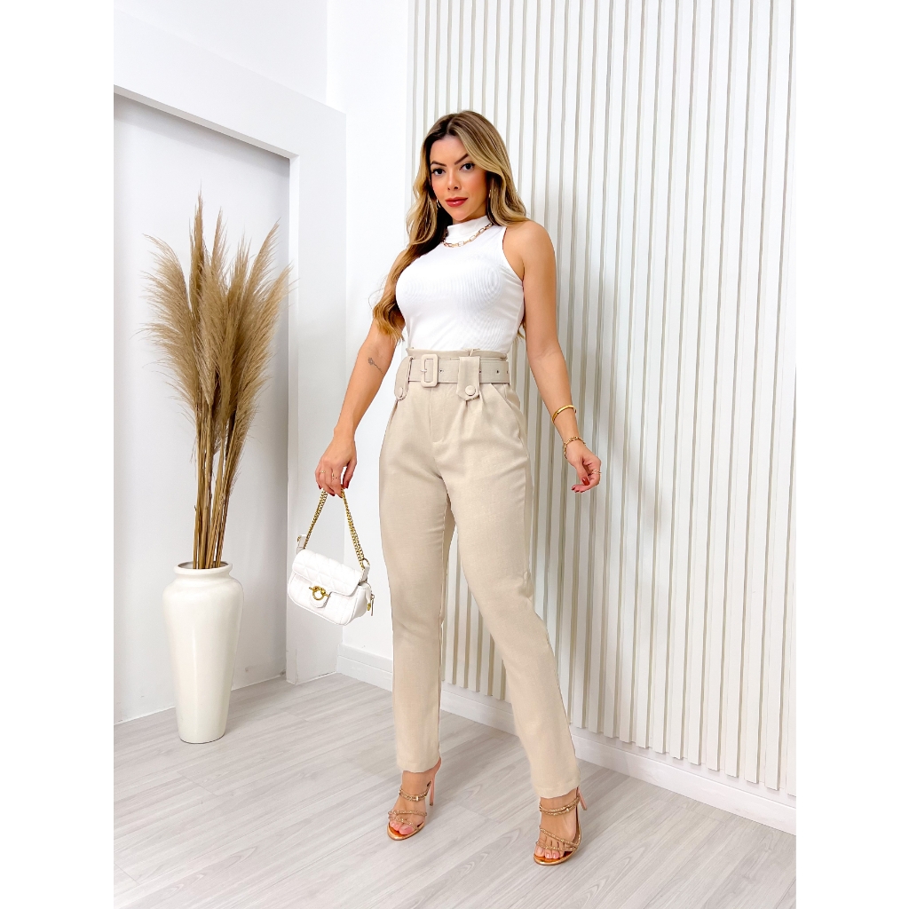 CAL A CINTURA ALTA EM LINHO Marca Fala Moda Atemporal All Sizes