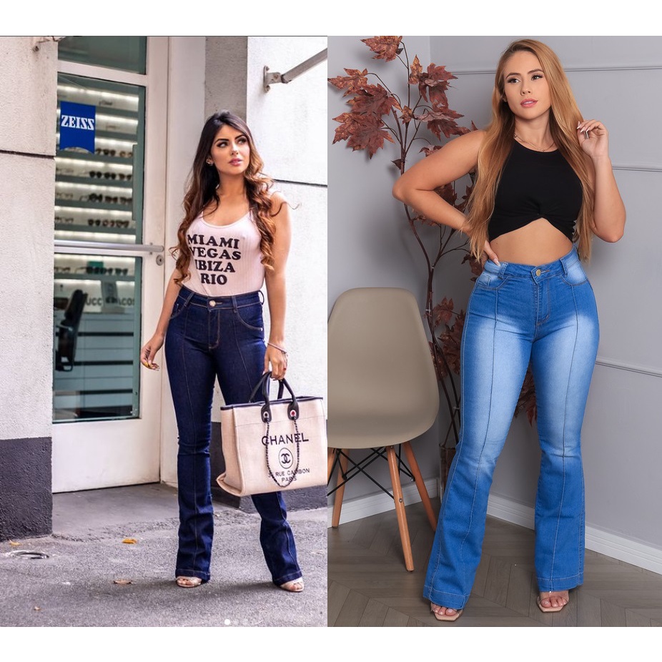 Calca Flare com Nervura Costura na frente com lycra Shopee Brasil