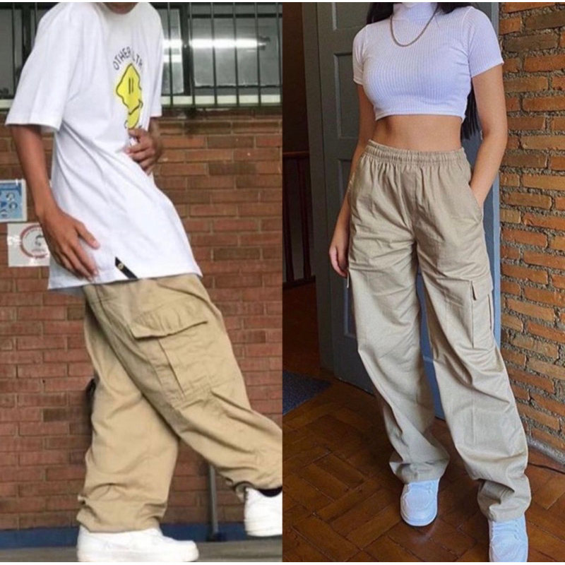 Cal a cargo sarja streetwear larga skatista masculina E feminina