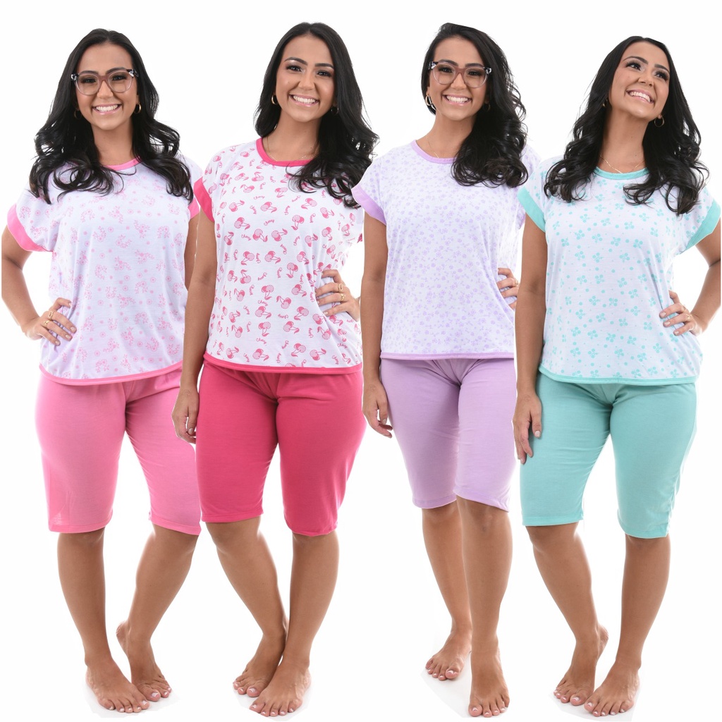 Pijama Cal a Pescador e Blusa Feminino Adulto Sortidos Senhora Terceira Idade Presente Linda Morena
