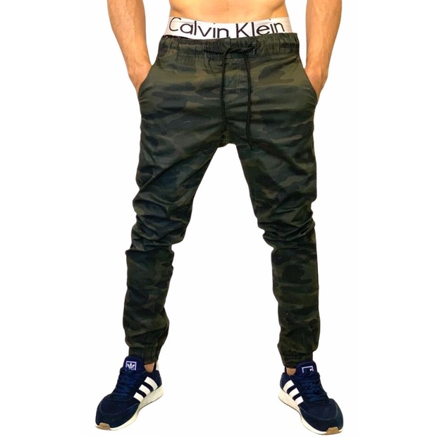 Cal a Jogger Masculina Camuflada Verde Militar Estilo Swag