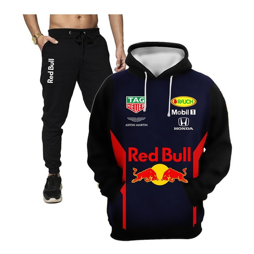 Conjunto Moletom Red Bull Blusa Motoqueiro Casaco De Frio e Cal a