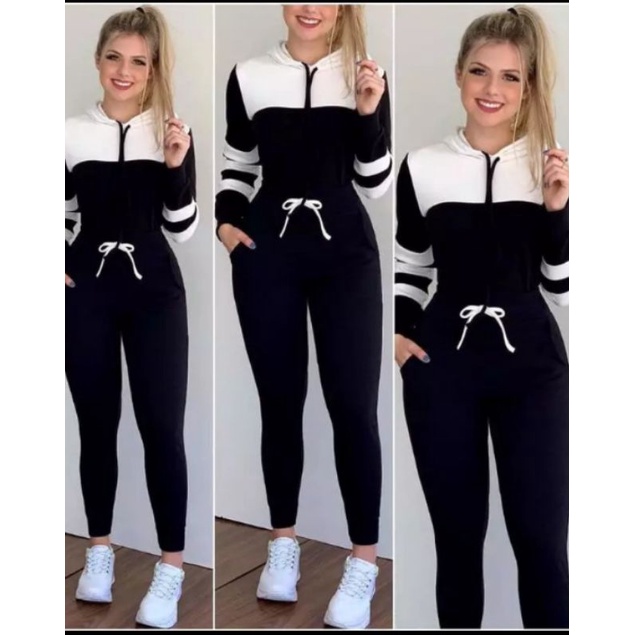 conjunto de frio feminino cal a blusa inverno frio moletom malha crepe com capuz