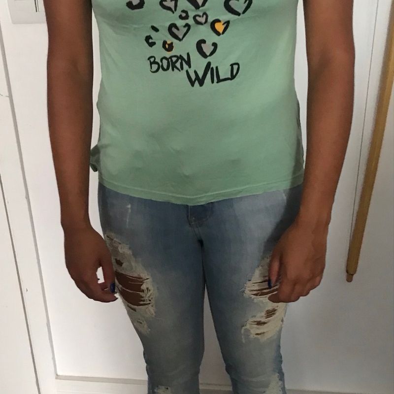 Cal a Jeans 36 Modelo Rasgado Marca Dilollani Blusinha P Verde