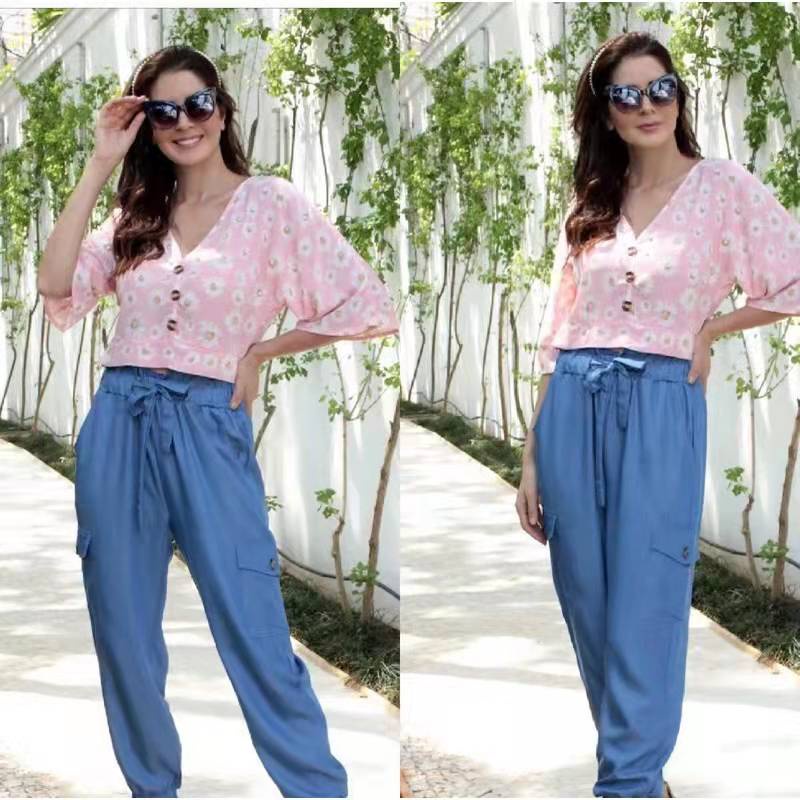 Calça jeans feminina clearance tecido mole, Cal a Tecido Trabalhado Bot o na Barra Petr leo DONDOCA Dondoca clearance