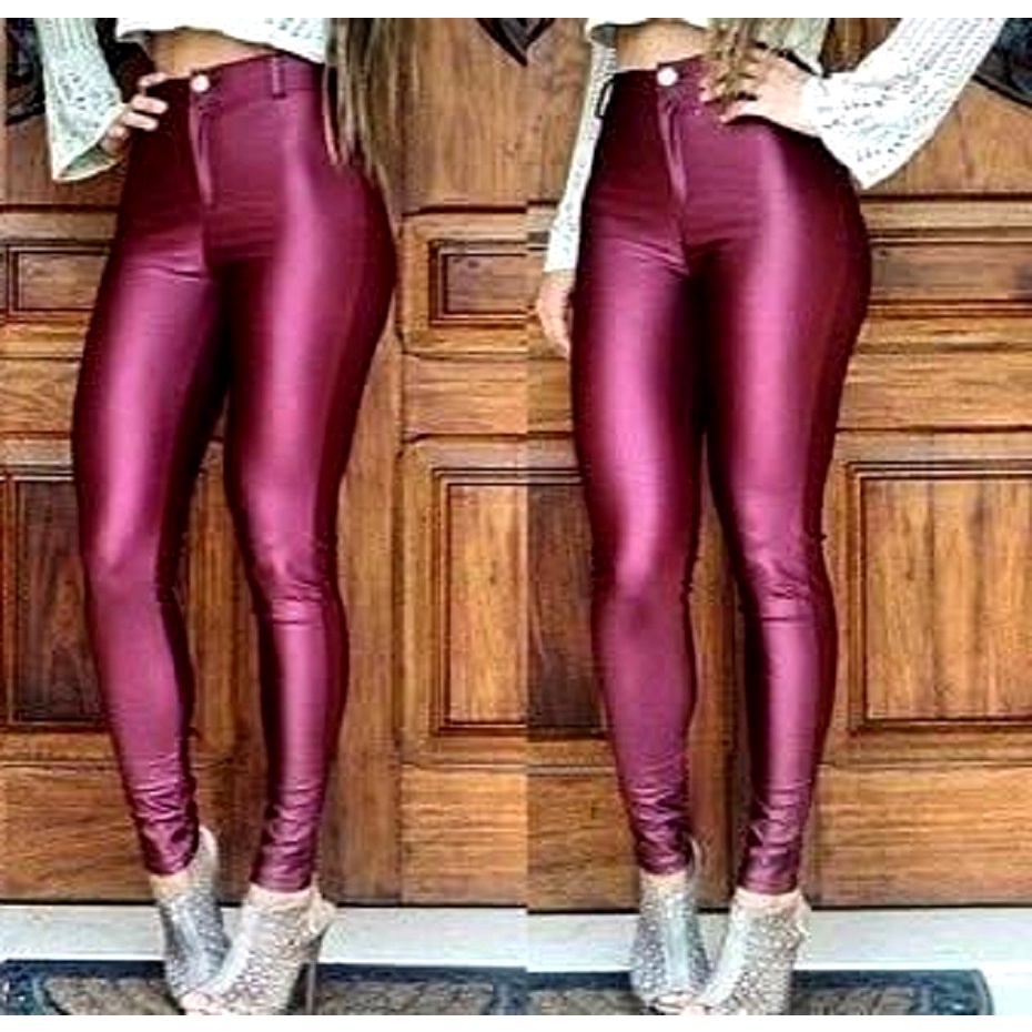 Calça disco azul clearance marinho, Cal a Disco Cirr Hot Pants Cintura Alta Legging Com Bolso e Ziper Couro Fake Lycra clearance