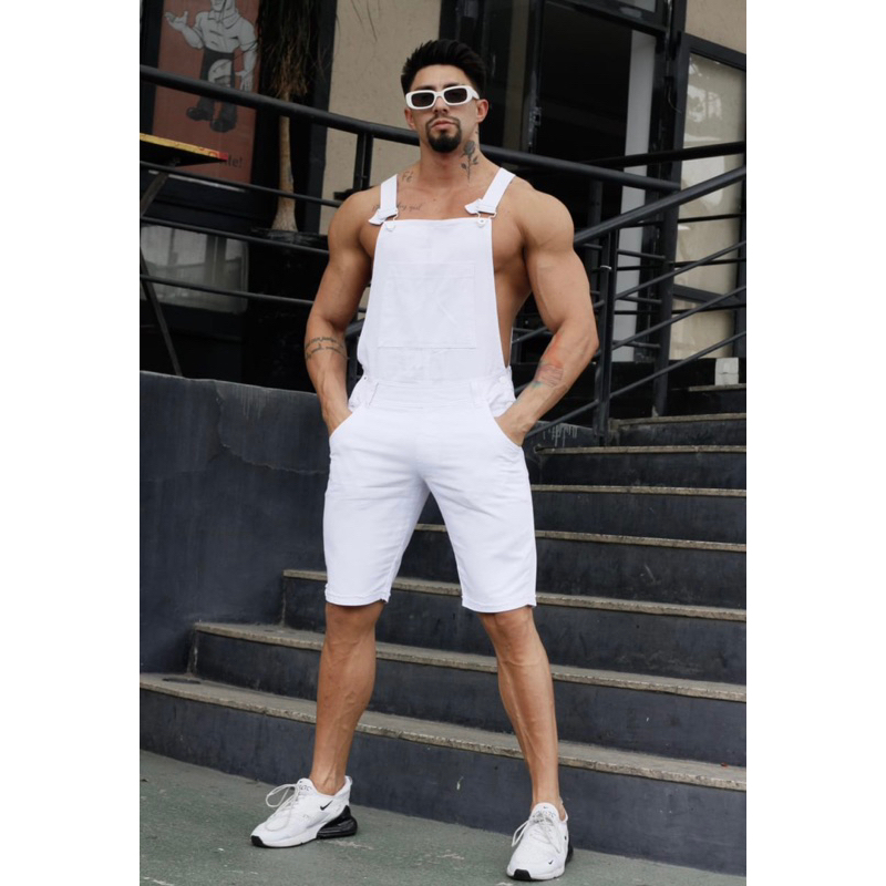 MACAC O JARDINEIRA JEANS MASCULINO NA COR BRANCA EXCLUSIVO