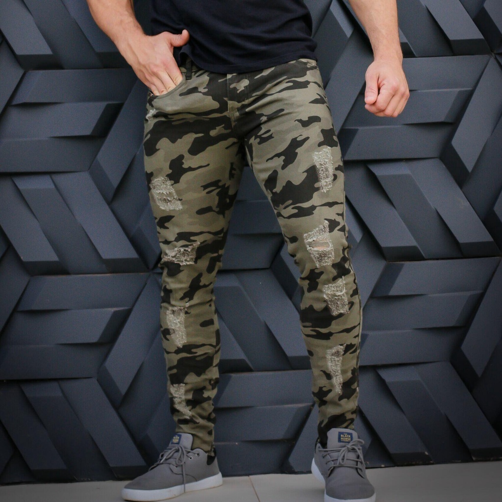 Cal a Jeans Masculina Camuflada Rasgada Premium Lycra SAINT ELIAN