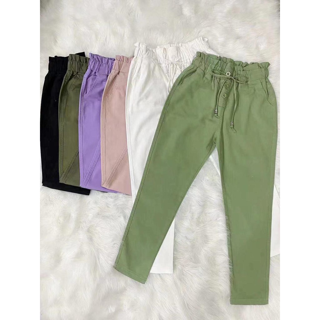 Calça feminina de clearance brim, Cal a Branca Feminina Em Brim C s Meio El stico Frete gr tis clearance