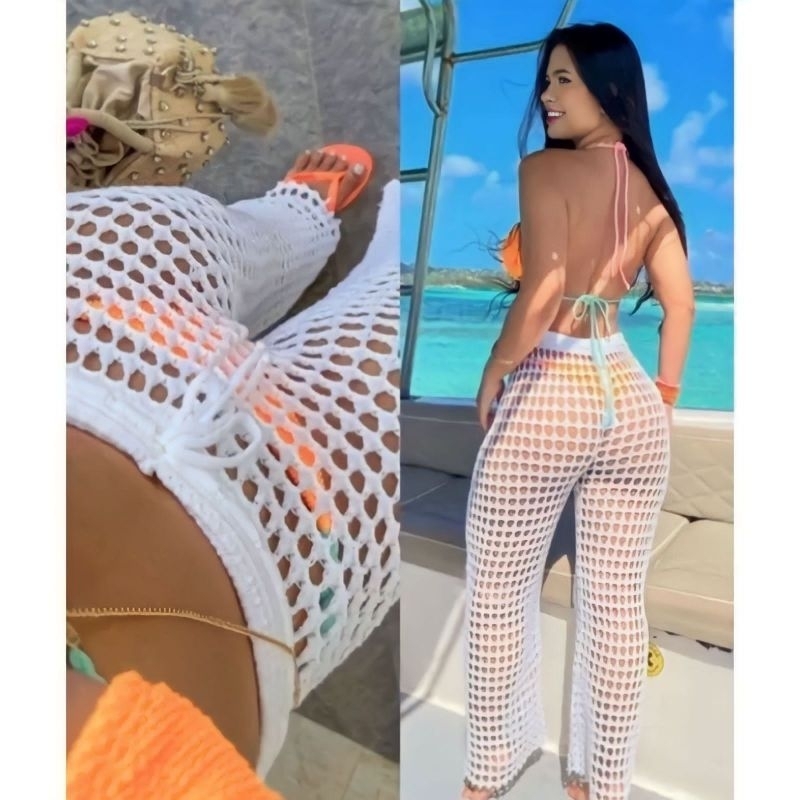 cal a furada cintura alta de amarrar transparente pantalona Wind
