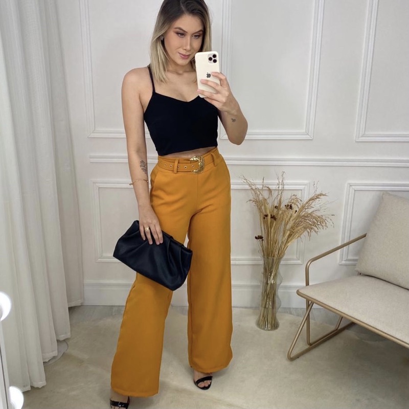 Cal a Pantalona feminina crepe alfaiataria com cinto encapado