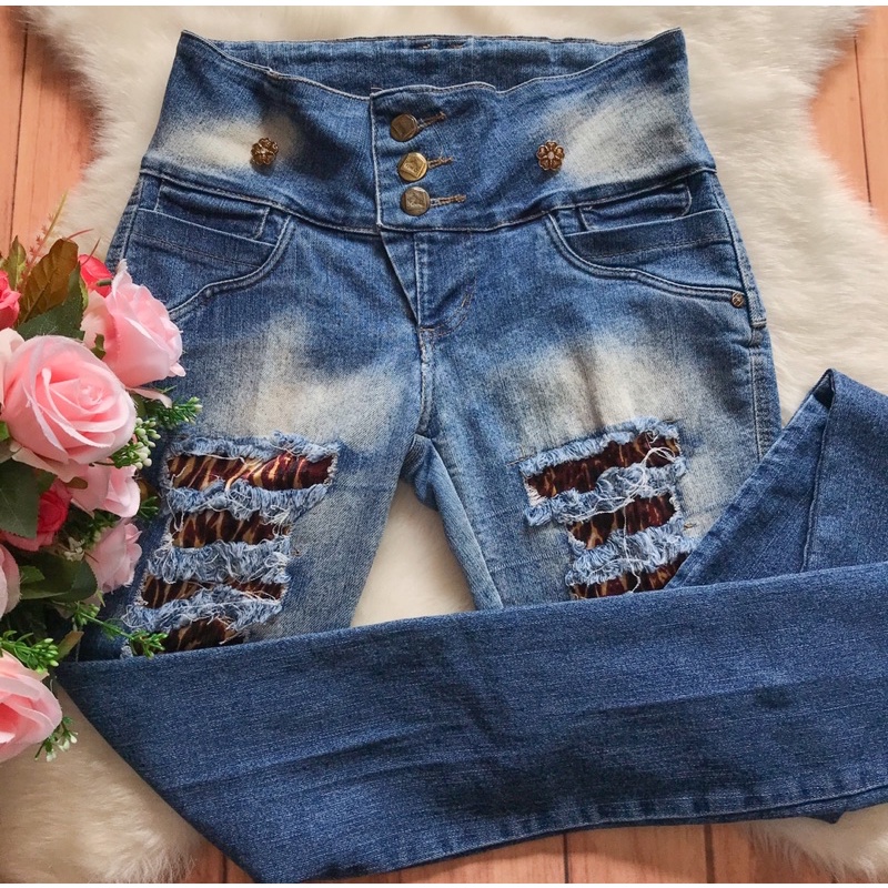 Cal a Jeans rasgada com forro de cetim em on a usada BRECHO