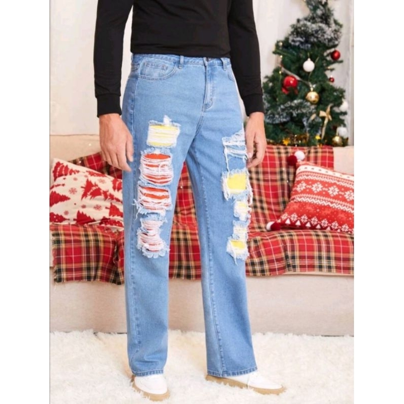 Calca rasgada com clearance forro, Cal a Jeans Unissex Rasgada Com Forro clearance