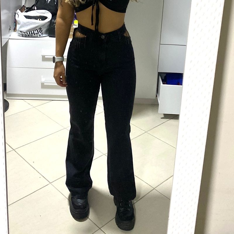 Cal a Skinny Cintura Alta em Jeans com Bolsos Preto