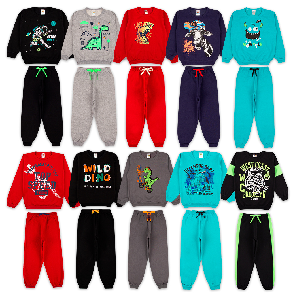 Calça moletom infantil clearance masculina barata, Kit Sortido 10 Pe as de Roupas Masculino Infantil Inverno 5 blusas casacos 5 cal as de 1 ao 10 Promo o Kit 5 Conjuntos Moletom Infantil clearance