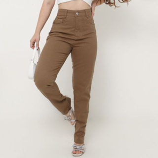 Cal a Jeans Feminina Mom Slim Marrom Claro Shopee Brasil