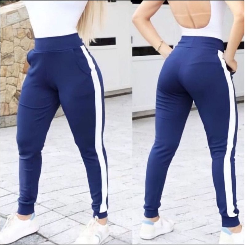 Cal a Jogger Malha Crepe com Listra Branca Shopee Brasil