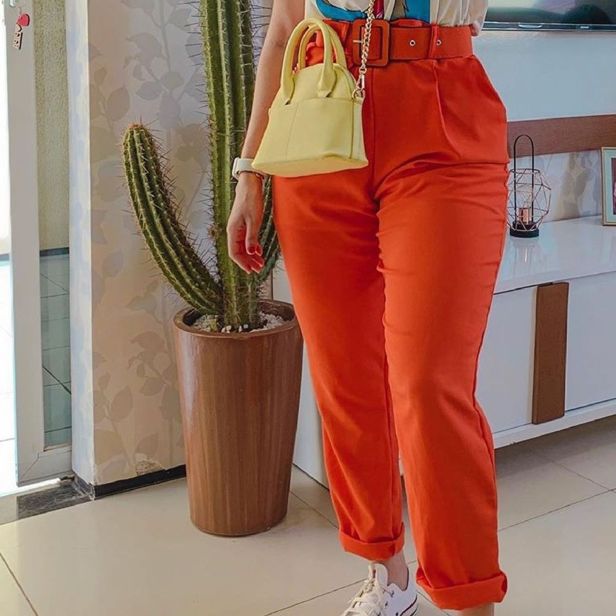 Cal a Alfaiataria Laranja Feminina Social Cintura Alta com cinto