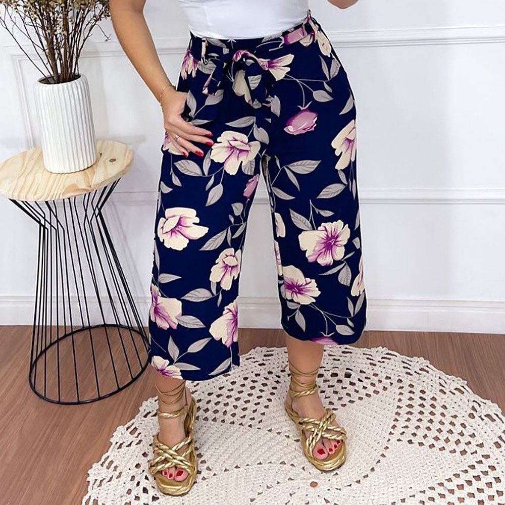 Cal a Pantacourt Feminina Estampa Floral Com Cinto Amarra o Promo o