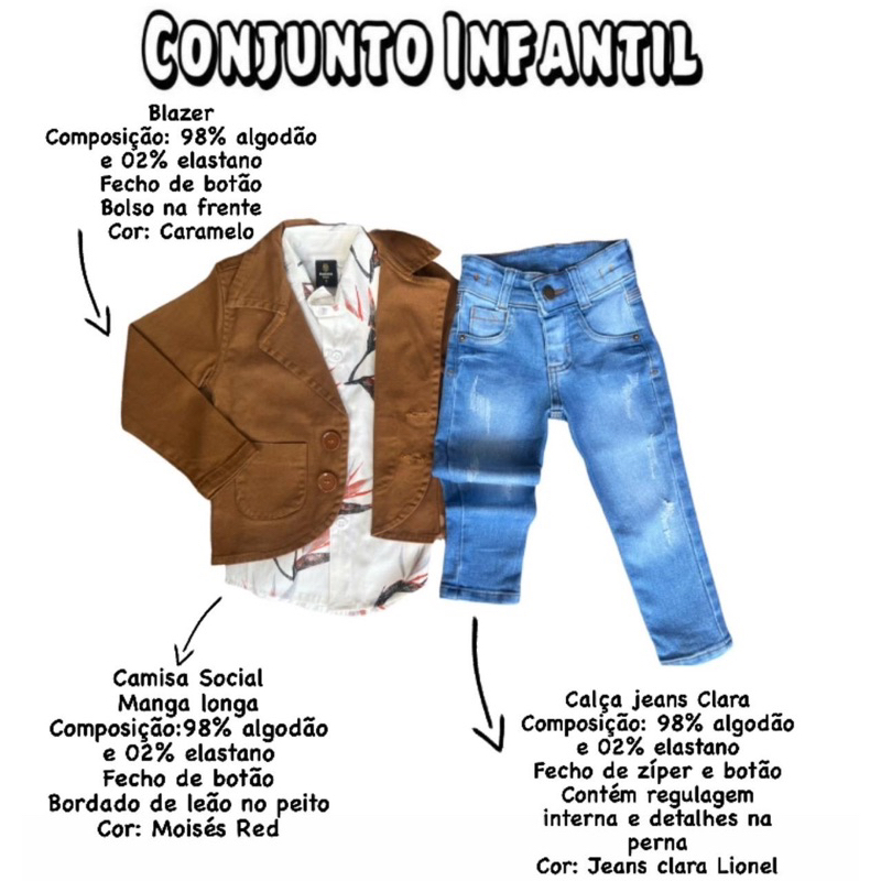 BLAZER INFANTIL MENINO CALCA JEANS CAMISA LONGA 1 AO 8 ANOS