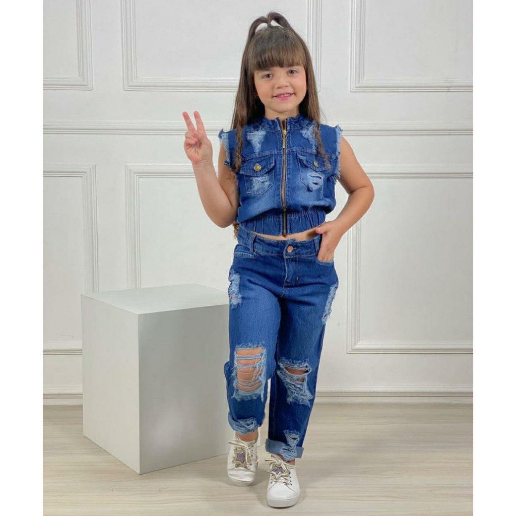 Conjunto Jeans Infantil Cal a e colete Moda Boutique Premium