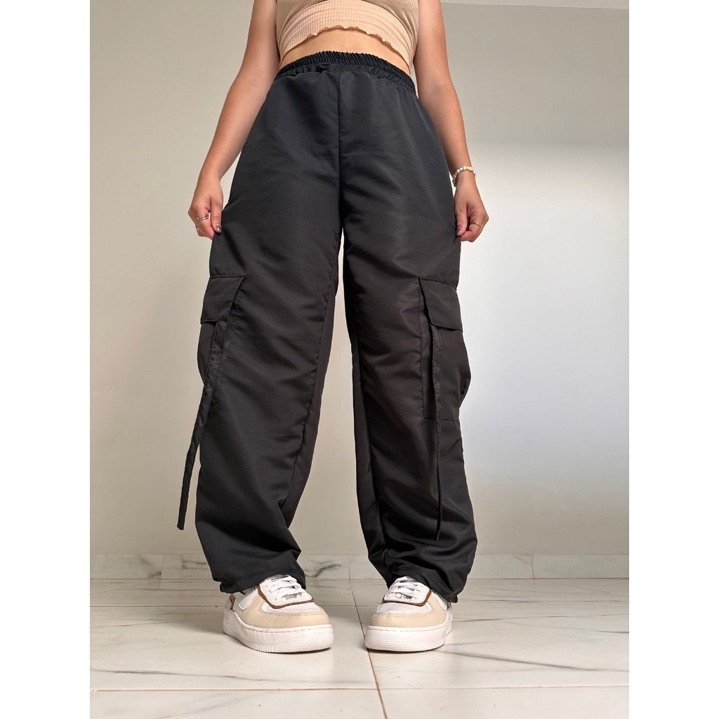 Cal a Cargo Larga Feminino de Tactel Preta estilo Skatista