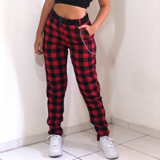 Calça flanela xadrez clearance vermelha, Cal a Xadrez Feminina Flanela Cargo Preta Vermelha Preta Branca clearance