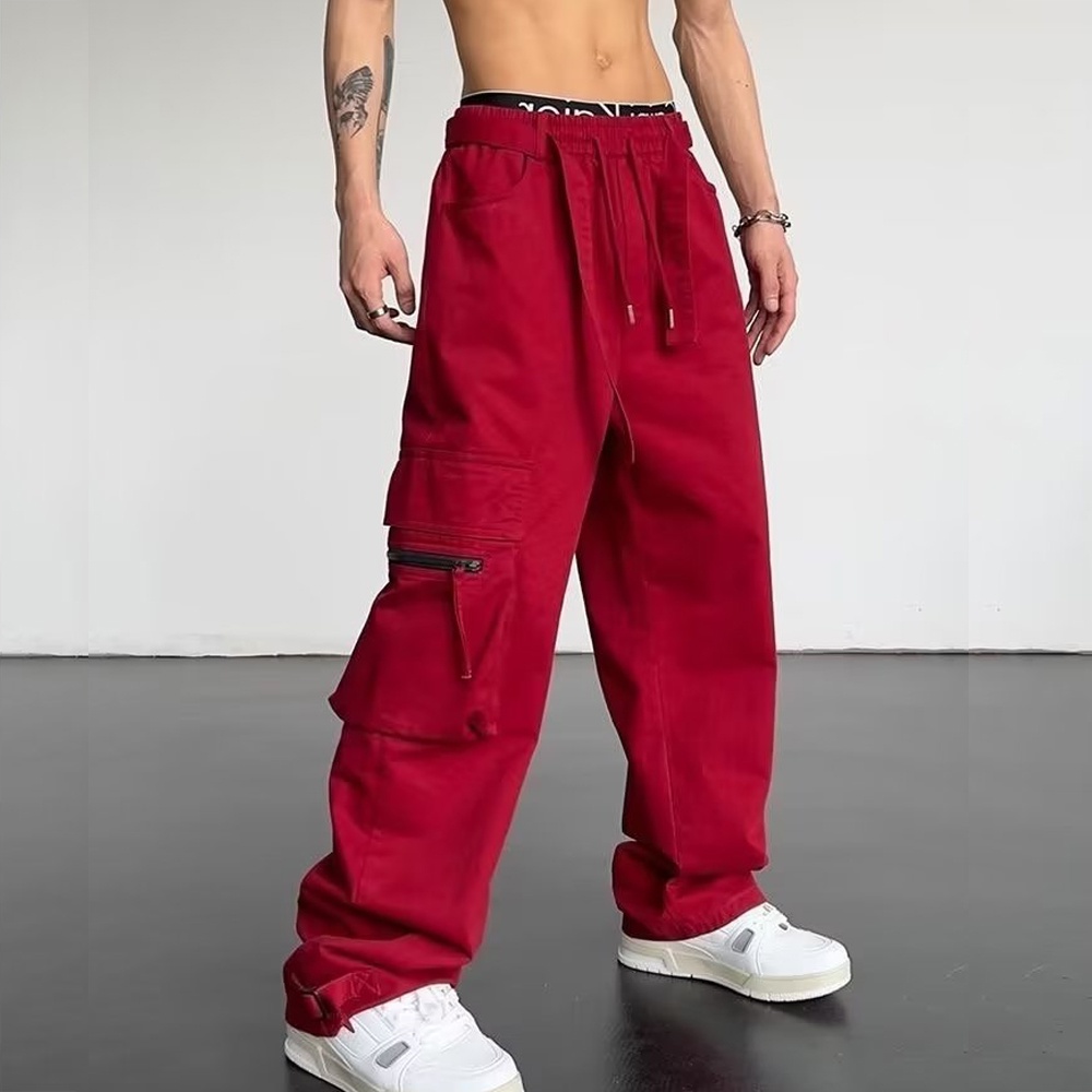 ins Cal a Cargo Vermelha Para Homens Alta Qualidade Moda Hip Hop Bolso Casual Largo Jogger Roupa De Rua Masculina Cal as P GGG