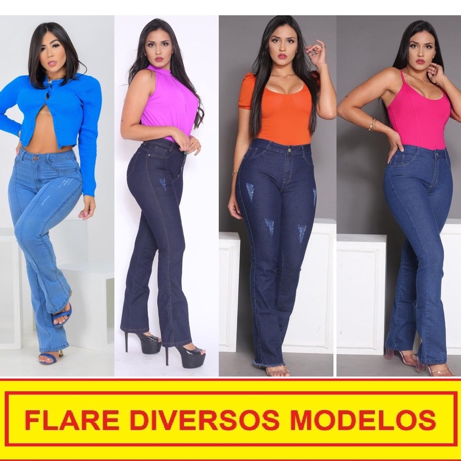 Tendência de calça clearance para 2019, Cal a Jeans Feminina modelo Flare Cintura Alta Levanta Bumbum clearance