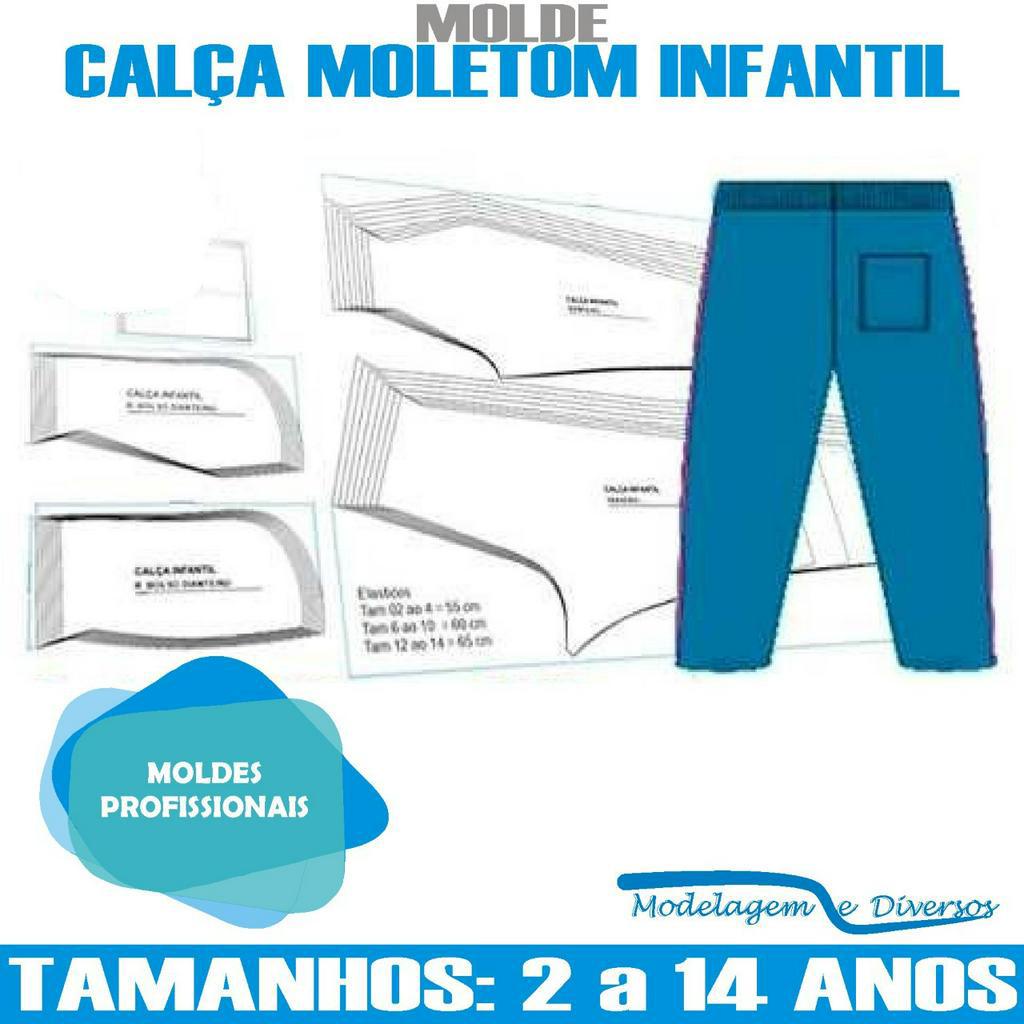 Molde Cal a De Moletom Infantil Modelagem Diversos Tamanhos 2 a 14 anos