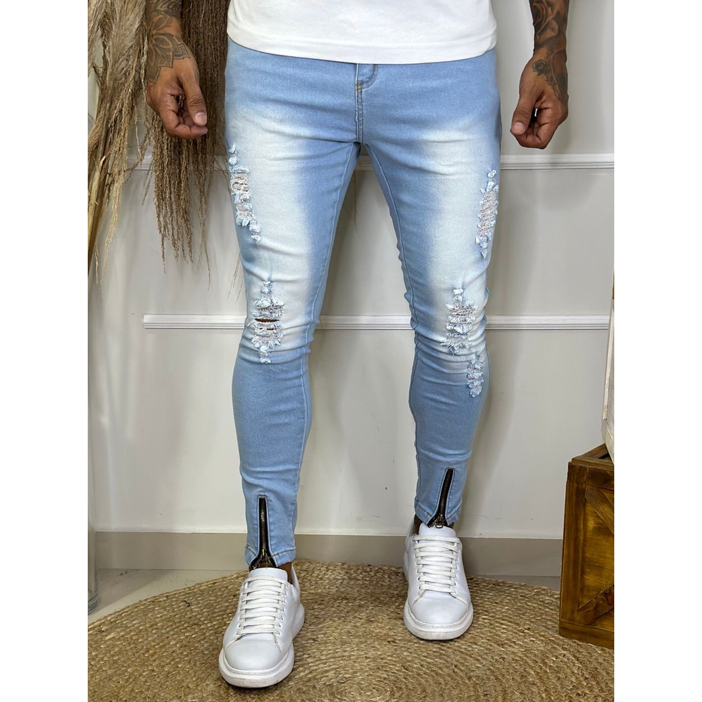 Cal a Super Skinny Masculina Com Lycra Jeans Ziper na Perna