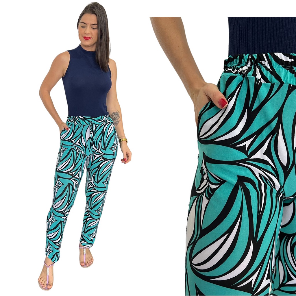 Calça de malha clearance estampada, Cal a Estampada SOB Soltinha com Bolsos Feminina clearance
